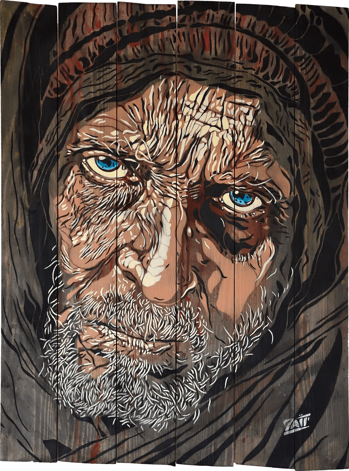 Zaitsev travaille sur différents supports, qu’il s’agisse de toile, de bois, de papier ou de métal, selon ce que chaque surface lui inspire.